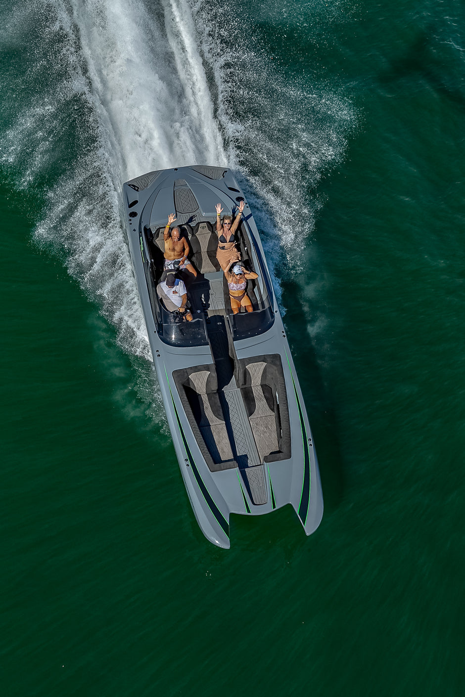 Cobra’s most popular lineups include the 260W Venom, 280W Venom, 280W Venom OB, and the 280W Python. The Python is our performance deck boat—spacious yet fast—while the Venom models are closed-bow catamarans that can also be customized into open-bow, walk-through, or walk-off designs. Each build is fully custom and in-house, delivering the perfect blend of speed, style, and versatility.