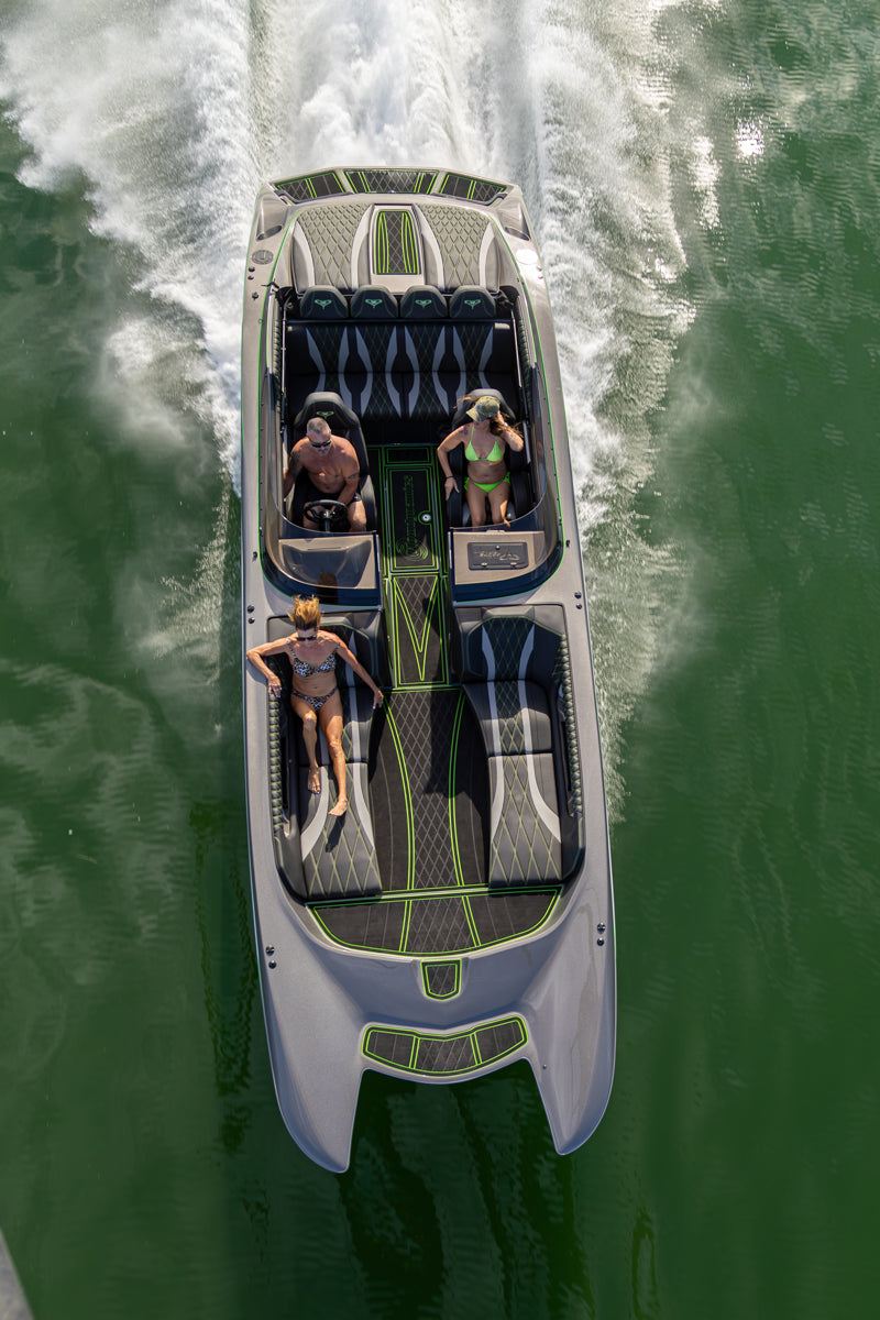 Cobra’s award-winning V-Bottom lineup includes the 230 Razor, 270 Razor, and the flagship 320 Razor, a dual-motor powerhouse. Celebrated for their sleek design, smooth handling, and top-tier performance, the Razor series has earned recognition across the performance boating industry. Each model is fully custom and built in-house, giving boaters the perfect combination of speed, stability, and comfort—all backed by Cobra’s reputation for quality craftsmanship.