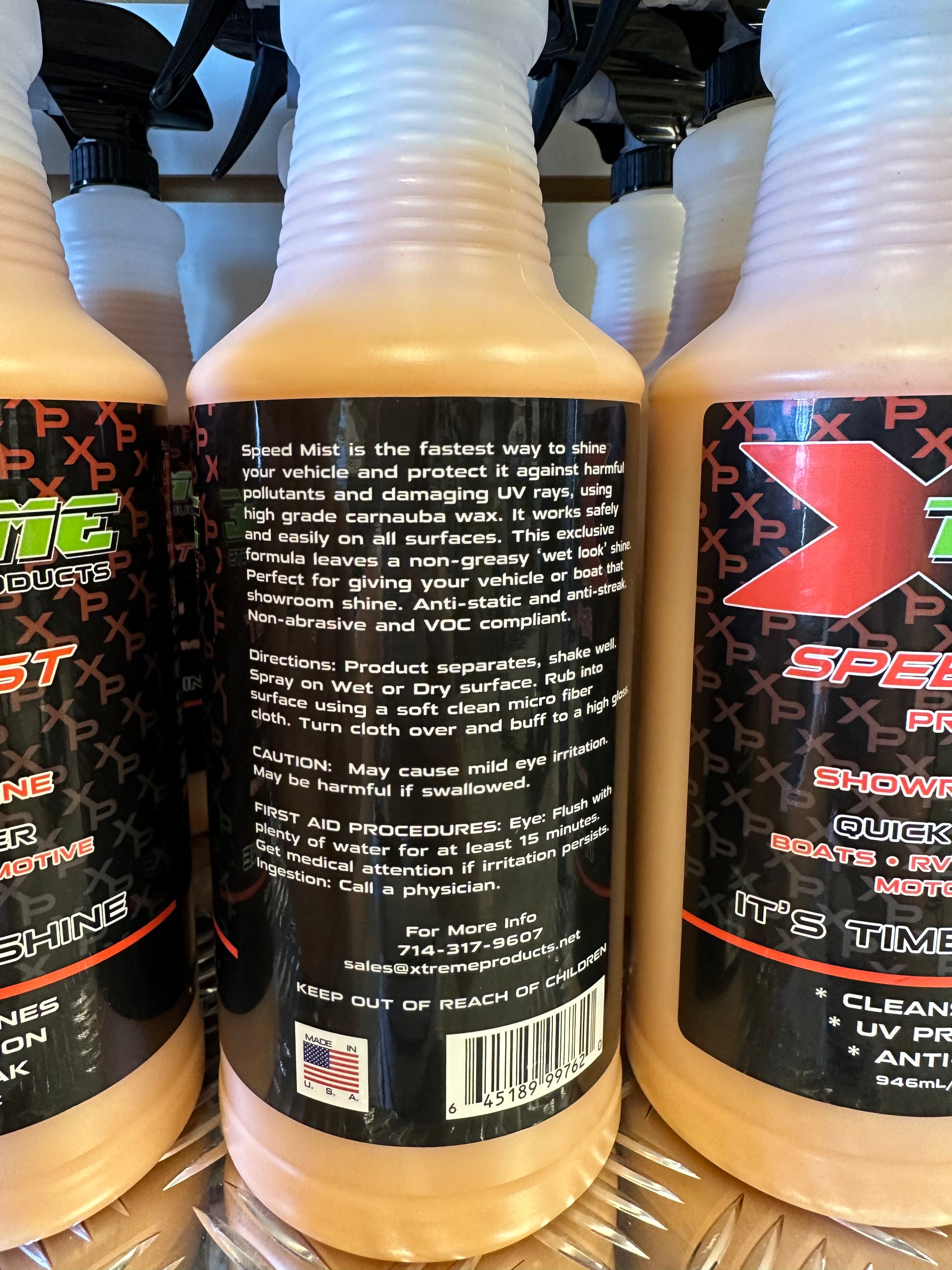 Speed Mist is the fastest way to shine your car/ truck, boat, motorcycle, RV or off-road vehicle and protect it against harmful pollutants and damaging UV rays, using high grade Carnauba Wax and sealants.
